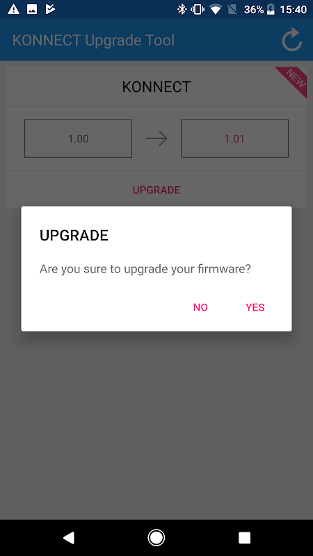Update of KONNECT is done via dedicated Android application. Please download this newly released "KONNECT Upgrade Tool App" to your smartphone and use it to upgrade KONNECT. For the updating procedure, follow the on-screen instructions of the application.