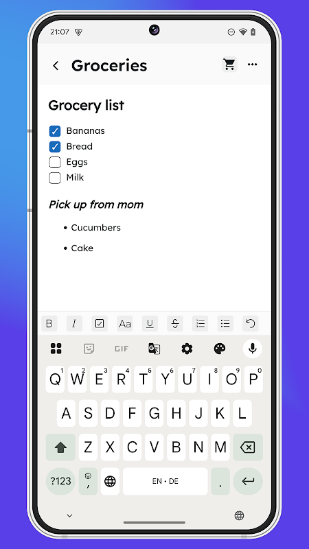 Krizzle은 사용자 친화적인 노트 필기 앱으로, 접근성과 개인의 필요에 맞춰 고도로 조정 가능하도록 설계되었습니다. 깔끔하고 직관적인 인터페이스를 통해 짧은 생각과 체크리스트부터 세부 항목과 프로젝트 노트까지 모든 것을 기록할 수 있습니다. 단순한 노트 필기를 넘어, Krizzle은 완벽하게 사용자 정의 가능한 컬렉션을 통해 유연한 정리 기능을 제공합니다.