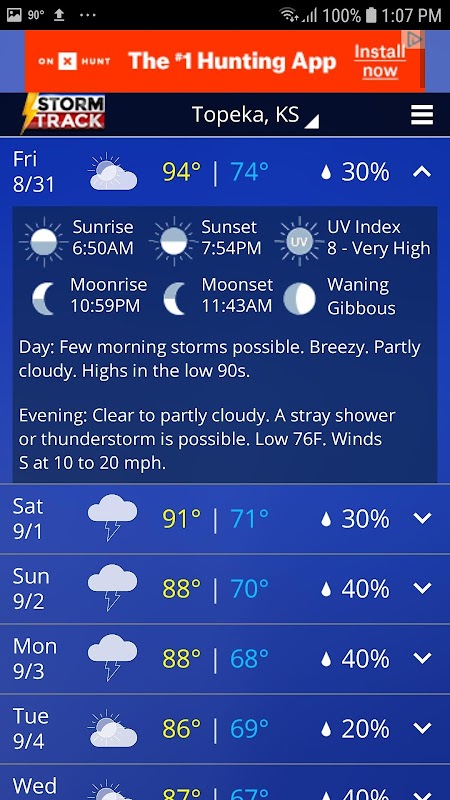 다시 불시에 기상 캐치를하게하지 마십시오. 스톰 트랙에서 신뢰할 수있는 기상 전문가들은 토피카, 다음날 앞서 주 동안 캔자스 '가장 정확한 시간별 예보를 제공합니다. 다른 날씨 앱과는 달리, 당신은 당신을 위해 사용자 정의 된 로컬 예보를 얻을 수 있습니다.