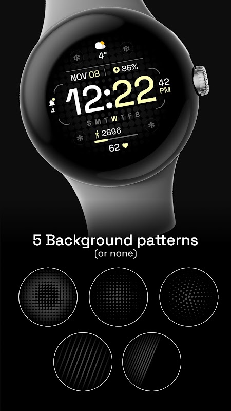 KZ01 디지털 시계는 이동이 잦은 현대인을 위한 완벽한 동반자입니다. 매끄럽고 직관적인 디자인은 시간(12시간 또는 24시간 형식으로 표시), 날짜 및 요일을 포함하여 필요한 모든 정보를 한 눈에 볼 수 있는 명확한 개요를 제공합니다. 일일 걸음 수 목표인 10,000보를 설정하고 달성하는 동안 배터리 수명, 걸음 수, 심박수를 추적하세요. 좋아하는 앱 4개에 쉽게 액세스하고 사용자 정의 가능한 컴플리케이션 기능을 통해 날씨를 확인하거나 일일 활동을 추적하는 등 고유한 요구 사항에 맞게 시계를 조정할 수 있습니다. 손목 게임을 업그레이드하고 KZ01을 모든 시간 기록 및 라이프스타일 요구 사항에 맞는 시계로 만드십시오.