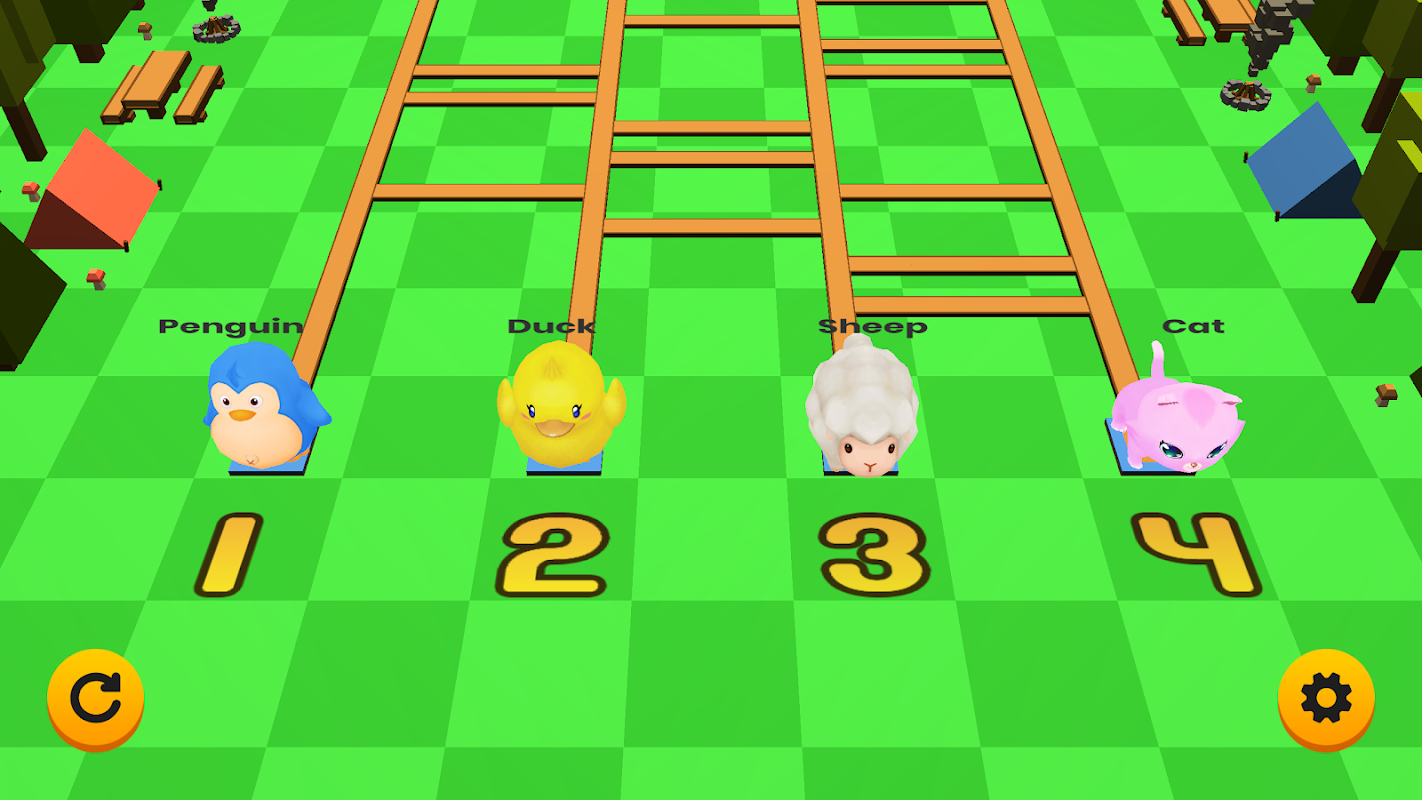 이 앱은 3D로 구현된 사다리 타기 게임 입니다.
