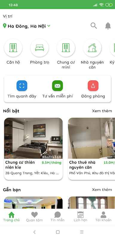 - Hỗ trợ nhắn tin, liên lạc trực tiếp với chủ căn nhà trọ