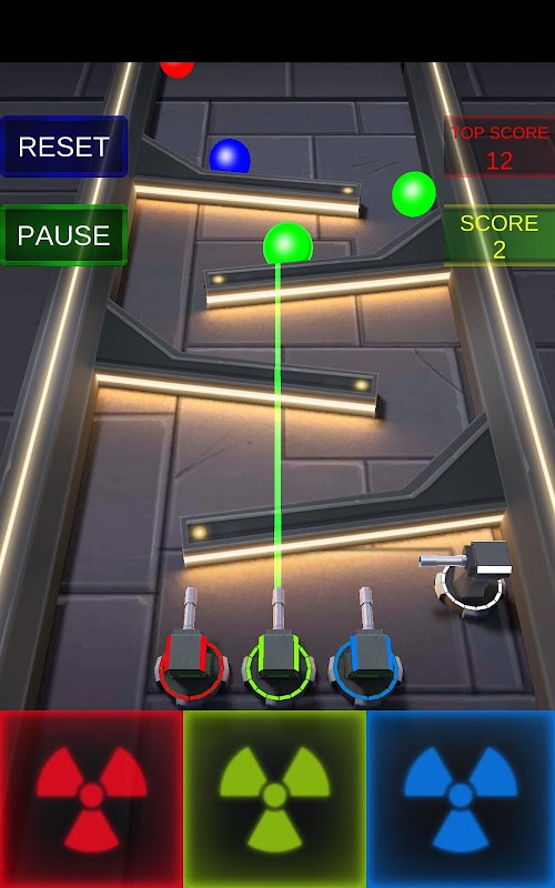 Use color lasers cannons to destroy falling balls. Red ball - Red laser.