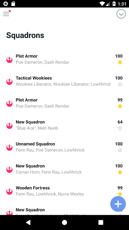Launch Bay is a Squadron builder for X-Wing The Miniatures Game with a clean user interface, frequently updated (mostly over the air) and ability to save your squadrons in the cloud in case something happens to your phone!