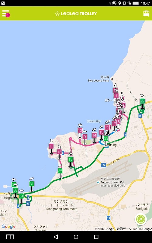 1)LeaLeaトロリーのバス、バス停の位置の確認