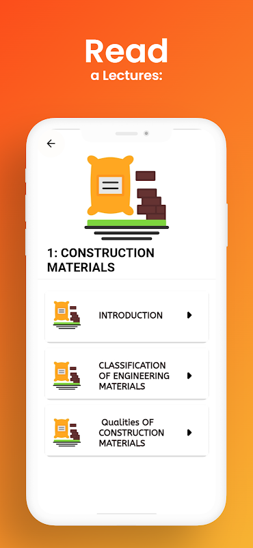 전문 엔지니어의 연구도 가능합니다. 건축 자재 배우기의 거의 모든 주제가 앱에서 명확하게 표시됩니다.
