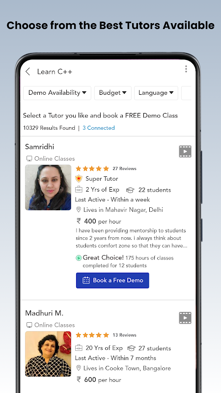 학습 여정을 한 단계 더 발전시킬 준비가 되셨나요? 이 앱은 여러분을 다양한 주제에 걸쳐 전문 강사, 트레이너, 기관과 연결해 줍니다. 시험을 준비하든, 새로운 언어를 배우든, 기술을 향상시키든 이 앱이 모든 것을 도와드립니다.
