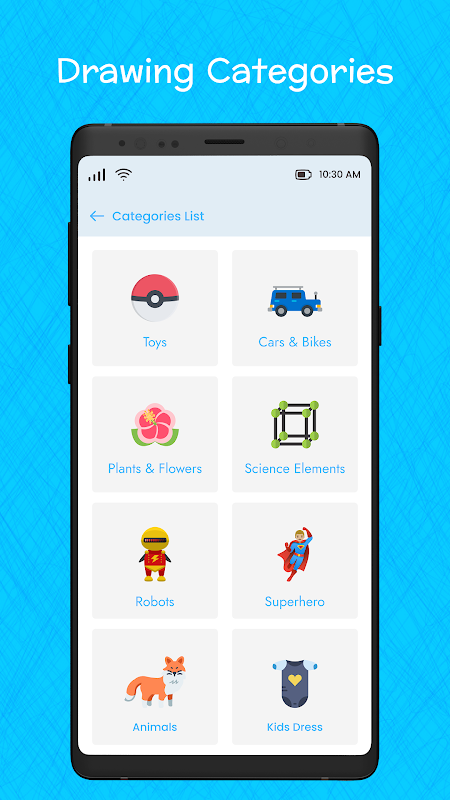 • 그리기 수업 앱에는 만화 캐릭터, 동물, 자동차, 용, 비행기, 꽃 등 많은 그림이 포함되어 있습니다.