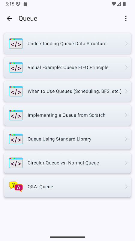 저희의 종합적인 튜토리얼 앱으로 자료구조와 알고리즘 개념을 학습하세요. 코딩을 처음 시작하는 초보자부터 기술 면접을 준비하는 개발자까지 모두에게 적합합니다. 모든 예제는 C++로 작성되었습니다.