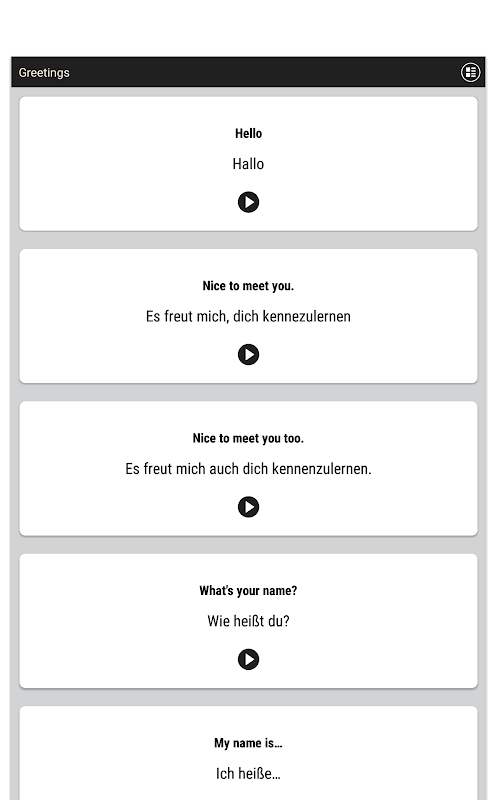 It is a quick fix for you to learn the core German phrases and sentences before visiting Germany. If you want to learn German language basics including commonly used German words and phrases, then this app can even be your pocket phrasebook, audiobook and German translator.