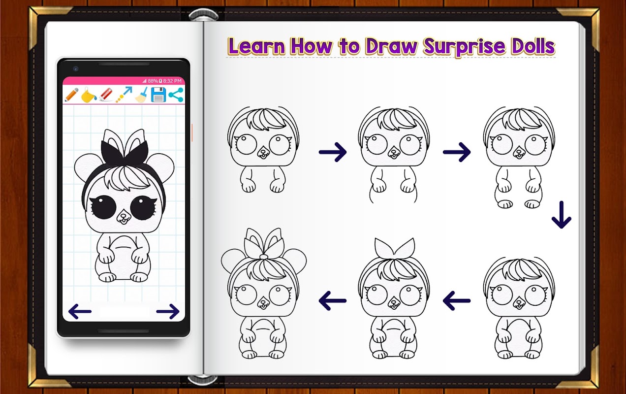 Learn How to Draw Surprise Doll Characters is a fast and simple step by step guide for drawing your favorite surprise doll. Its step by step instructions improve creativity and confidence in your young ones while drawing their favorite LOL Surprise Dolls.