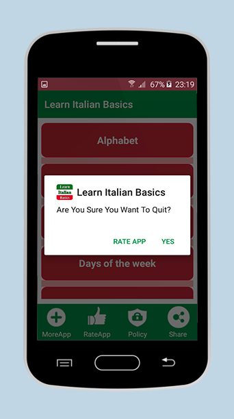 Auxiliary app to learn italian languages for speaking italian very easily the app includes all vocabulary to learn italian with english translation to understand with way very useful.