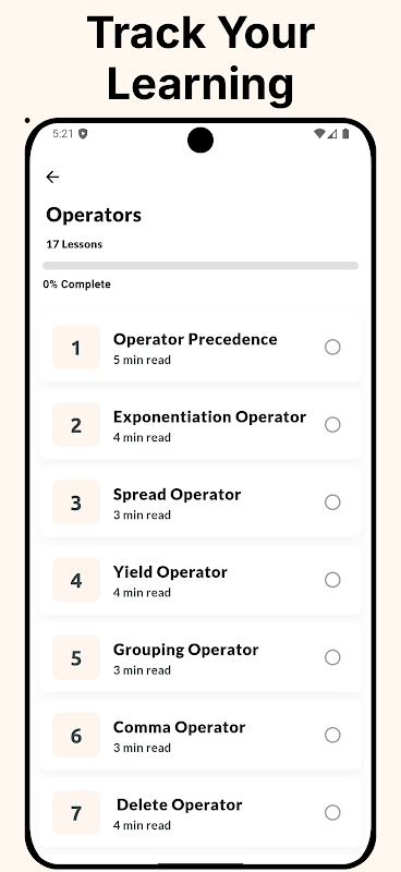 많은 학습자가 적절한 지도 없이 Javascript - Programming을 배우려고 할 때 어려움을 겪습니다. 이 앱은 이론과 실습을 결합한 따라 하기 쉬운 레슨을 제공하여 이러한 문제를 해결합니다. 모든 섹션은 코드를 읽고 쓰는 것뿐만 아니라 이해하고 작성하는 데에도 도움이 되도록 설계되었습니다. 지속적인 연습을 통해 문제 해결 능력을 향상시키고 프로그래밍 여정에 자신감을 얻을 수 있습니다.