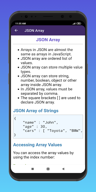 구문과 예제를 통해 어디서나 오프라인으로 JSON을 배울 수 있습니다.