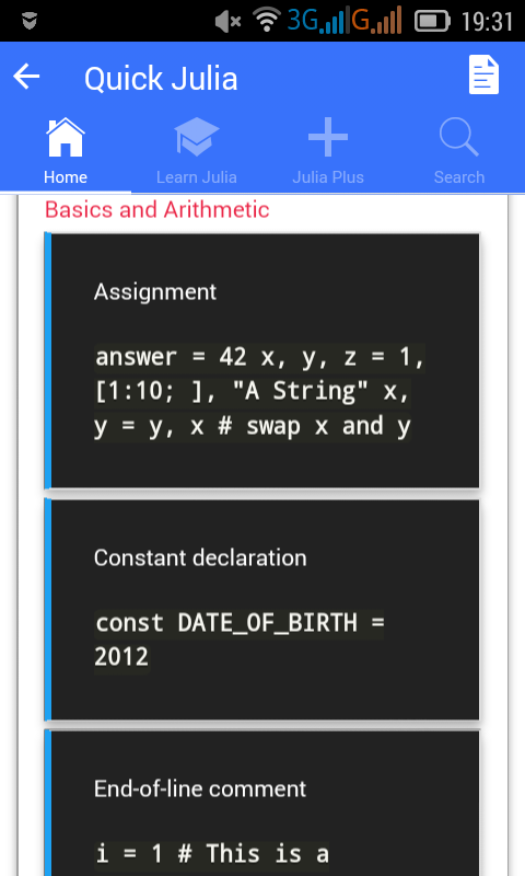 이 응용 프로그램은 줄리아 언어를 배우고 또한 차세대 프로그래밍 언어를 마스터하고 싶은 사람을위한 초보자 가이드입니다.