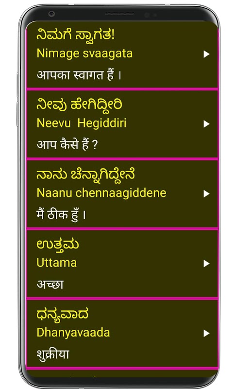 3. 모든 칸나다어 단어와 문장은 힌디어 의미와 함께 제공됩니다.