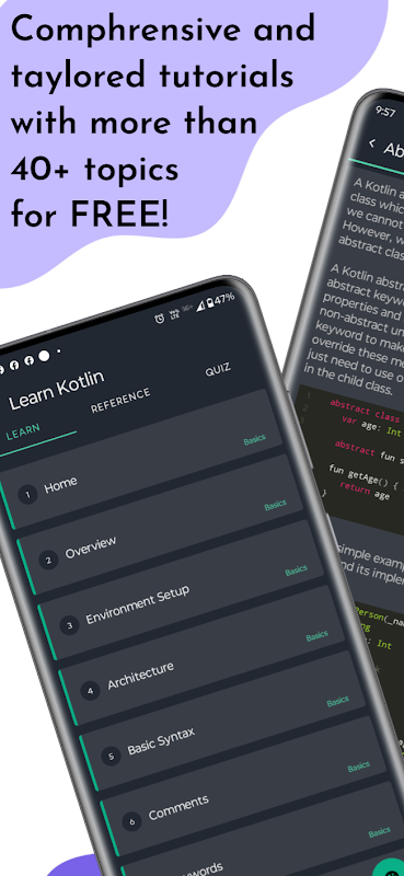지금 Google Play 스토어에서 'Kotlin 알아보기'를 다운로드하고 Kotlin 여정을 시작해 보세요. 새로운 경력을 시작하거나, 기술을 향상시키거나, 단순히 코딩의 세계를 탐험하려는 경우, 우리 앱은 완벽한 동반자입니다.
