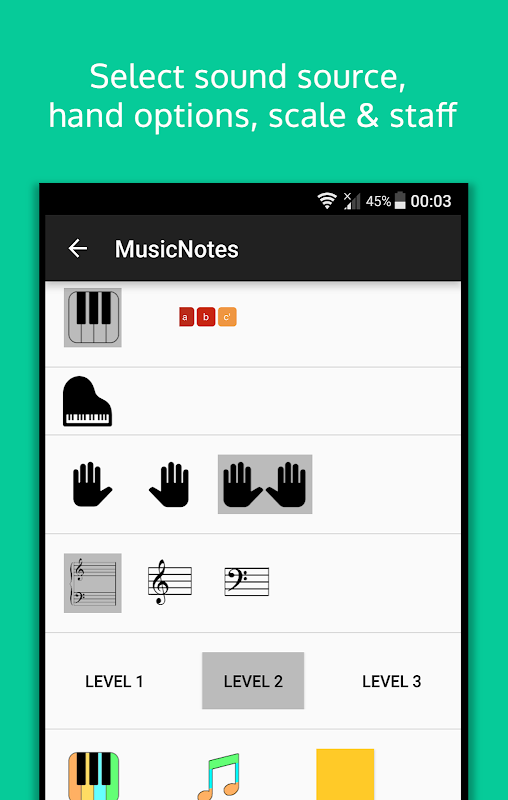 예를 들어, 음표 학습 능력을 가속화하기 어려운 특정 음표에 집중하여 운동을 맞춤화하세요. 초보자는 레벨 1과 2부터 시작하여 음표 학습의 기초를 다지기 위해 줄이나 줄 사이의 공간에 위치한 음표에 중점을 둡니다.