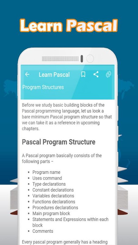 This app will help you to understand basic Pascal & advance Pascal. This app is Pascal Tutorial for Beginners. The chapters in Learn Pascal lessons are fast, easy, and effective; the app is set up to be completed in less than three hours. No prior programming experience is needed.