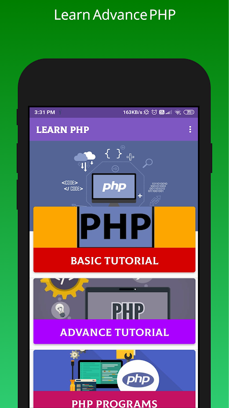 독방 응용 프로그램에서 PHP를 배우십시오. 이것은 기초에서 고급 웹 개발을위한 완전한 PHP 7 프로그래밍 오프라인 가이드입니다. 이것은 실제 웹 사이트를 구성 할 수 있도록 PHP 프로그래밍에 대한 위에서 아래로 매뉴얼입니다.
