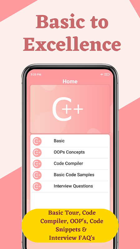 Learn Programming in C ++ 앱은 수업을 읽고 컴파일러에서 연습함으로써 코드와 기본 개념을 배우는 데 도움이됩니다.