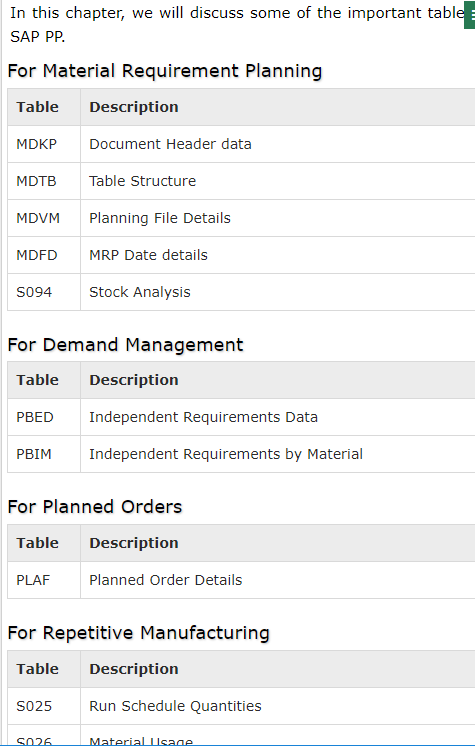 SAP PP Quick Guide - Learn SAP PP in simple and easy steps starting from Introduction, Common Tables, Organization Structure, Integration with Other Modules, Master Data, Bill of Materials, Work Center, Routing, Demand Management, Creating PIR, Material Requirement Planning, MRP List, Long Term Planning, Production Orders, Production Order Change, Production Order Confirmation, Canceling Production Order, Capacity Planning, Capacity Leveling, Goods Receipt, Stock Overview, Goods Issue