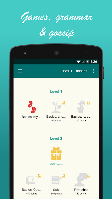 SpeakTribe를 사용하면 게임을 재생하여 동시에 그것을 위해 스페인어와 테스트를 구사하는 방법을 배웁니다. 당신은 학습 단어, 짧은 문구, 그리고 일의 문장의 문제로 말하기 시작합니다. SpeakTribe, 개인 코치, 당신은 재미 있고 쉬운 방법으로 어휘와 발음을 포함하여 기초를 배울 도움이 될 것입니다.