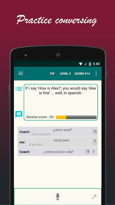 수업의 우리의 혼합은 실제 상황에 대한 대화 연습과 함께, 당신 어휘와 문법을 가르치고있다. 수업이 놀라운 혼합이 응용 프로그램에게 스페인어를 시작하는 가장 빠른 방법을합니다. 당신은 작은 5 일 이내에 기본 회화 스페인어의 묘리를 터득!