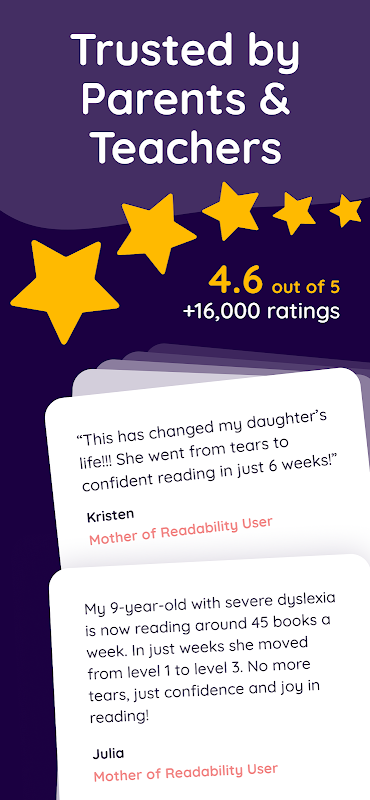 다른 독서 앱은 게임이나 간단한 파닉스 연습을 제공하는 반면, Readability는 개별 맞춤형 지도를 통해 독특하고 포괄적인 읽기 학습 경험을 제공합니다.