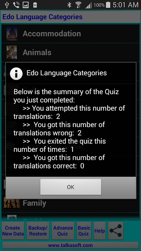 퀴즈 모드 모두 기본 (악센트 문자를 사용하지 않음) 및 고급 (악센트 문자 테스트 지식) 두 모드는 퀴즈의 결과를 표시, 사용할 수 있습니다.