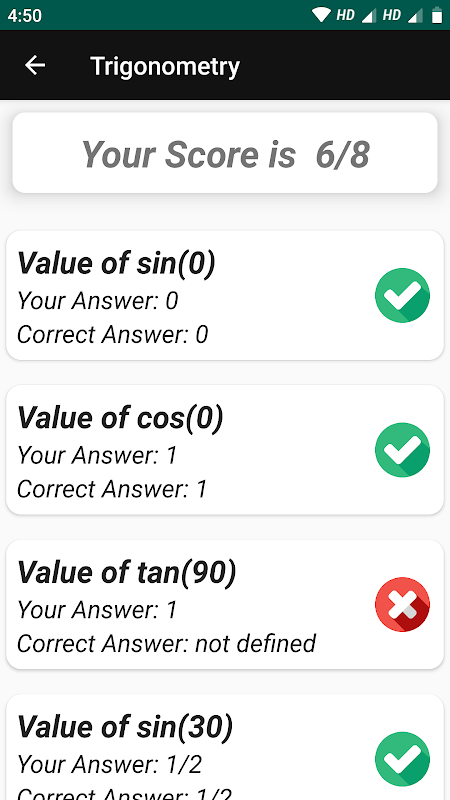삼각법으로 모든 중요한 공식을 현명하게 분류하여 원하는 언제 어디서나 수식을 참조 할 수 있습니다. 가고 싶은 느낌이 든다면 어떤 주제에 대해서도 퀴즈를 풀어보십시오.