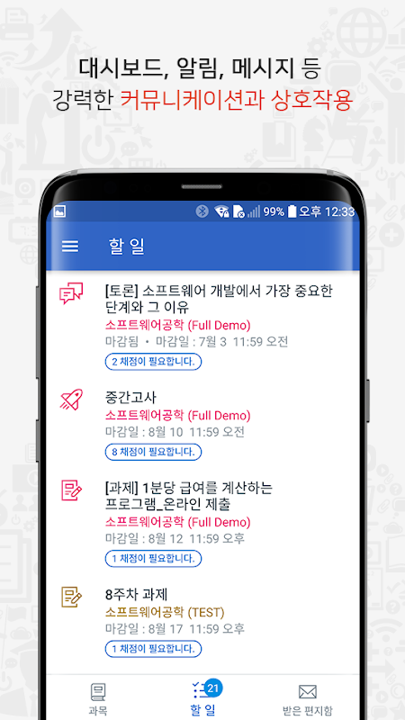 - 강의자료실에 모바일 기기 상에서 즉시 자료 등록 가능