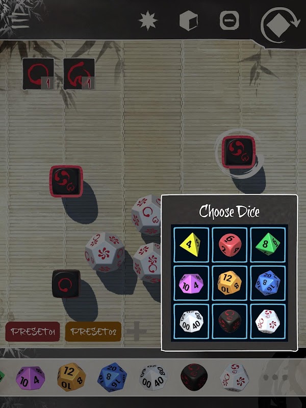 • 주사위의 조합에 대한 사용자 정의 사전 설정을 만듭니다.