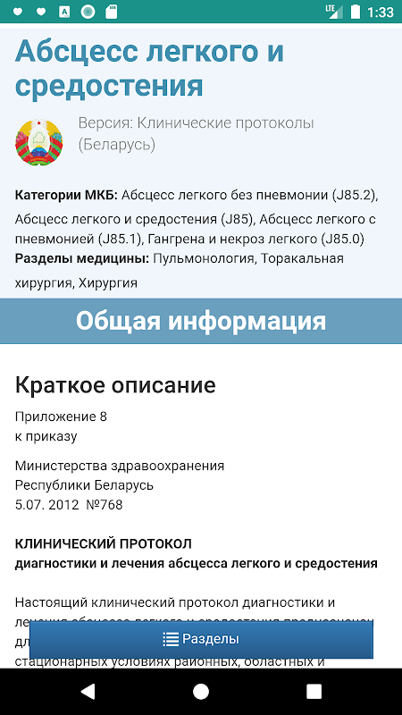 이 응용 프로그램에는 벨로루시 공화국 보건부의 진단 및 치료를위한 임상 프로토콜의 전체 데이터베이스와 의사를위한 의약품 및 정보 및 참고 자료 디렉토리가 포함되어 있습니다.