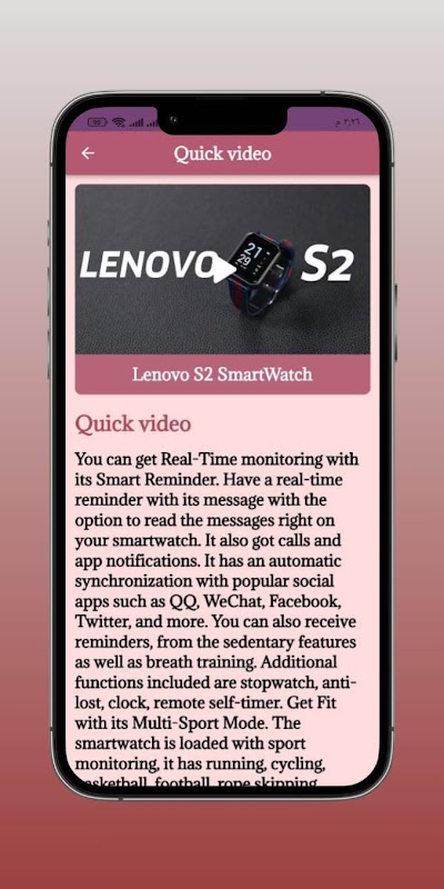 An app Lenovo S2 SmartWatch that gives you information about Lenovo S2 SmartWatch