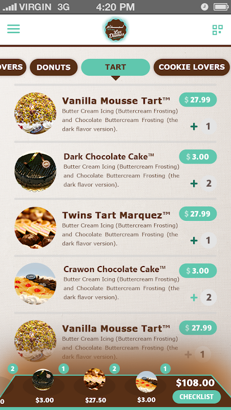 우리의 새로운 전체 메뉴와 새로운 레 아가씨 안드로이드 앱에 당신의 주문을.