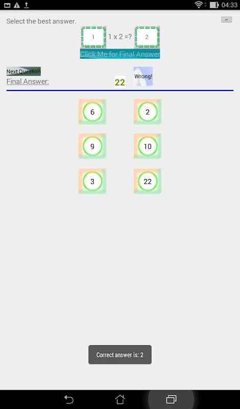 If the answer picked is wrong, correct answer is displayed.