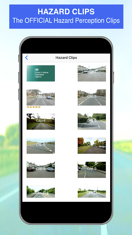 모든 공식 DVSA 개정 질문. 공식 HAZARD 클립.