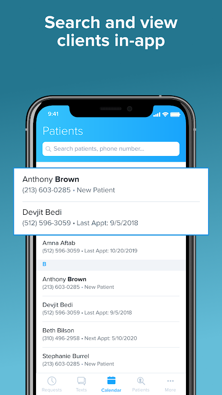 Lighthouse 360+를 사용하면 환자, 일정, 약속 요청, 양방향 문자 대화 등 가장 중요한 정보에 즉시 액세스하여 어디서나 진료를 쉽게 관리하고 실행할 수 있습니다.