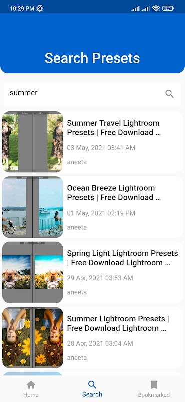 사전 설정의 경우 직접 만들거나 LightRoom Preset DNG Files Mobile 응용 프로그램에서 찾은 것과 같은 다른 사람이 만든 것을 사용할 수 있습니다. 이 응용 프로그램에는 무료로 다운로드할 수 있는 고품질 사전 설정이 많이 있습니다.