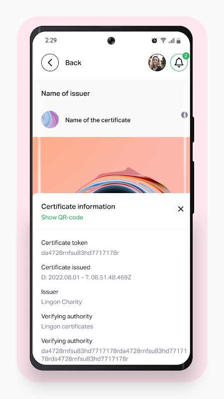 Lingon Wallet을 통해 사용자는 정품 및 소유권에 대한 디지털 인증서를 요청하고보고 상호 작용할 수 있습니다.