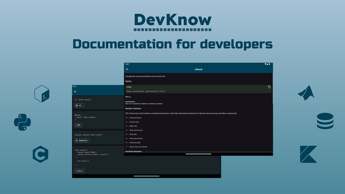 DevKnow는 귀하가 알아야 할 모든 것을 언제든지 액세스할 수 있는 사용하기 쉬운 형식으로 제공하는 신뢰할 수 있는 동반자입니다. 프로그래밍의 최신 동향과 업데이트를 확인하세요. 앞으로는 새로운 주제와 언어를 추가하여 지식을 더욱 확장할 예정이므로 오프라인에서도 계속 학습하고 코딩할 수 있습니다.