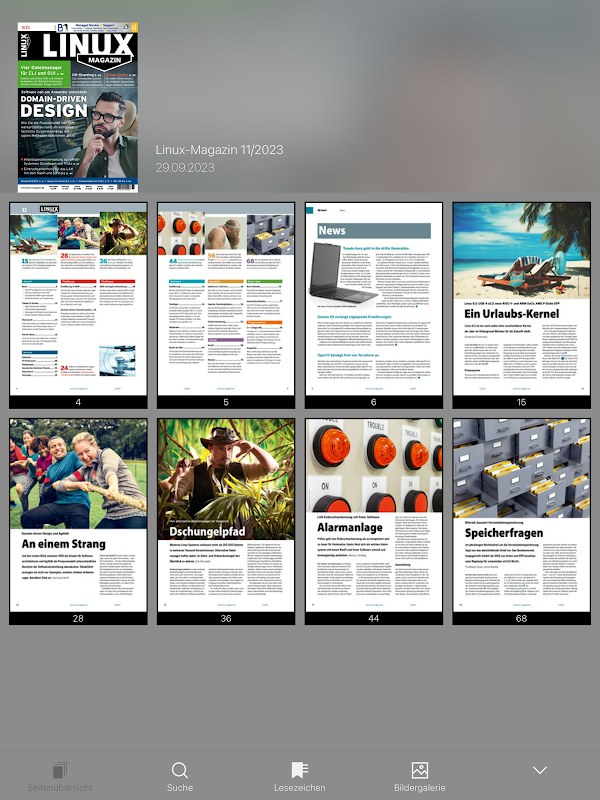 주요 Linux 간행물은 매월 발행되며 1994년부터 독립적이고 검증된 정보를 제공해 왔습니다. 주제는 소프트웨어, 네트워크, 관리, 개발, 교육부터 하드웨어까지 다양합니다. 기업에서의 Linux 사용 및 관련 마이그레이션은 중요한 구성 요소입니다.