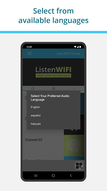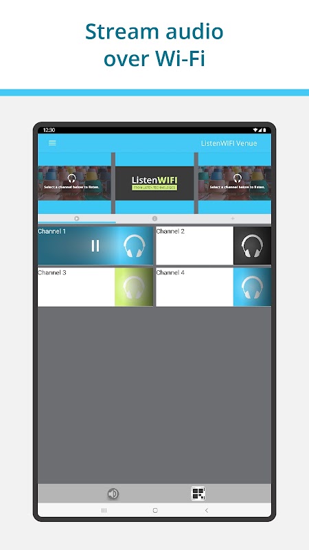 ListenWIFI 앱은 Wi-Fi를 통해 ListenWIFI 또는 Listen EVERYWHERE* 시스템이 장착된 장소의 스마트 장치에 라이브 장소 오디오를 전달합니다.