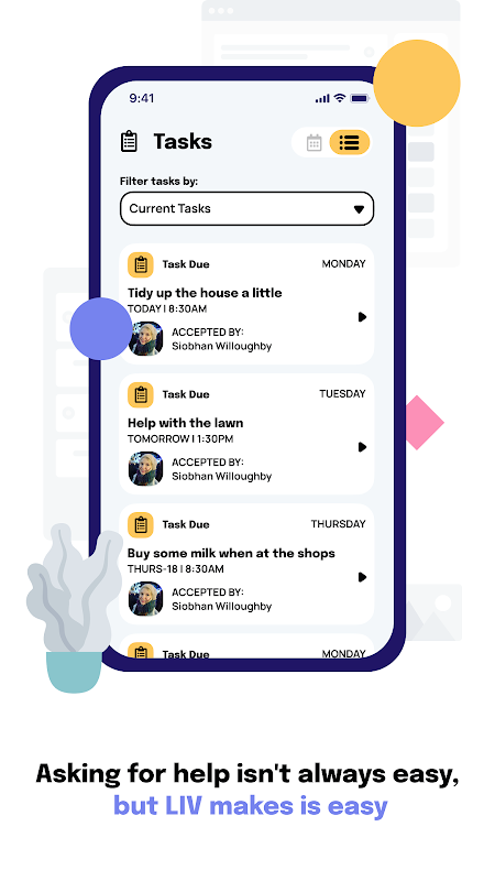 LIV는 사용이 간편한 앱으로 가족, 친구, 서비스 제공업체 및 커뮤니티와 연결하여 집에서 더 쉽게 독립적으로 생활할 수 있는 중앙 장소를 제공합니다.