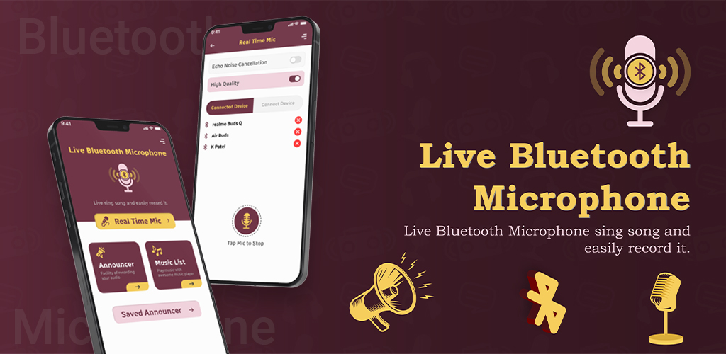 라이브 마이크 블루투스 마이크의 특징:- 1. 실시간 블루투스 마이크.