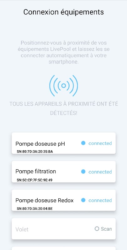 Application fonctionnant exclusivement avec les boitiers de la famille LivePooL : pH-Connect, Rx-Connect, Cover connect et Pump-Connect.