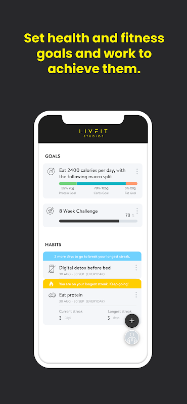LivFit 앱을 사용하면 귀하의 피트니스 및 건강 목표를 달성하는 데 도움이 되도록 특별히 고안된 LivFit Studios 맞춤형 운동 프로그램에 액세스할 수 있습니다! 코치의 도움을 받아 운동, 영양, 생활 습관, 측정 및 결과를 추적할 수 있습니다.