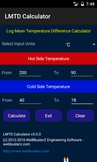 카운터에 대한 로그 평균 온도 차이를 계산하고 공동 전류 흐름