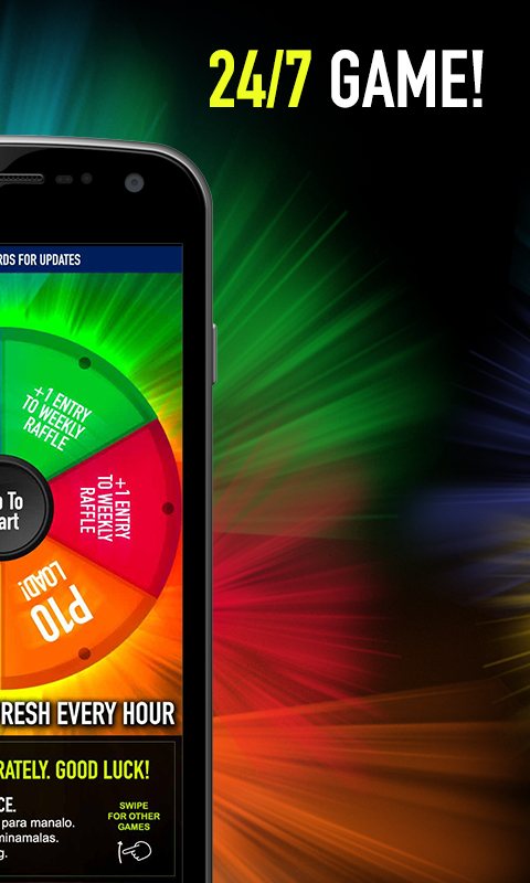 Ang “Roleta” ay available 24/7 para tuloy tuloy lang ang saya. Mag-swipe para mag-spin, at pag nanalo ka, ipapadala kaagad ang inyong Load Rewards! *Virtual High Five*